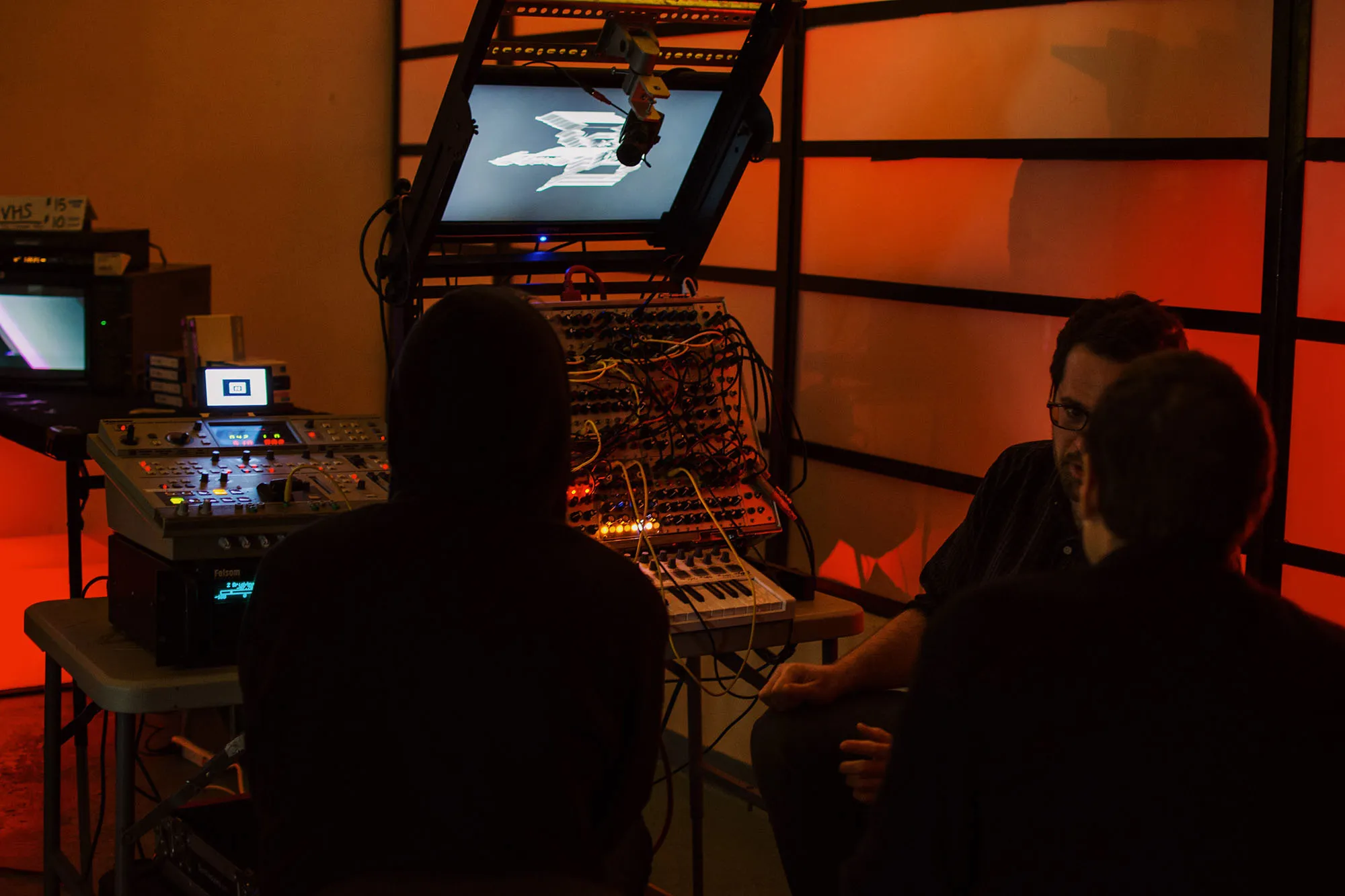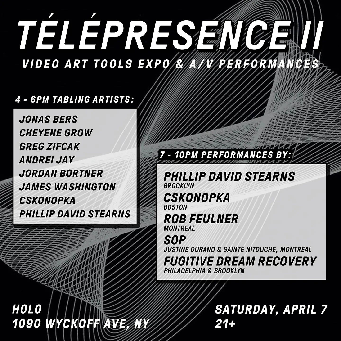 On Saturday, April 7, I organized the second edition of Télépresence, a yearly conference of analog video artists and evening of audio visual performance. I also performed as 1/2 of Fugitive Dream Recovery, a collaborative side project. We held a tabling session for artists to show the methods and devices they use to manipulate video signals, then hosted an evening of a/v performances.