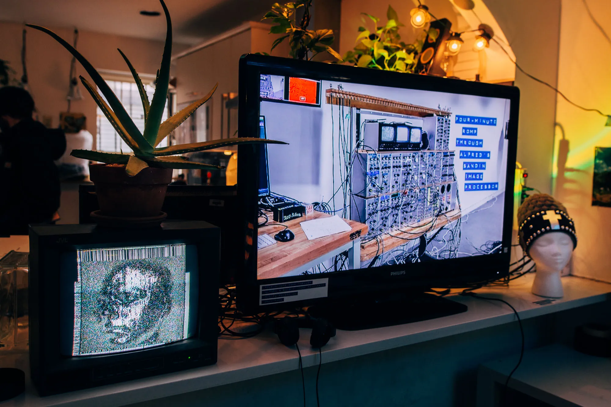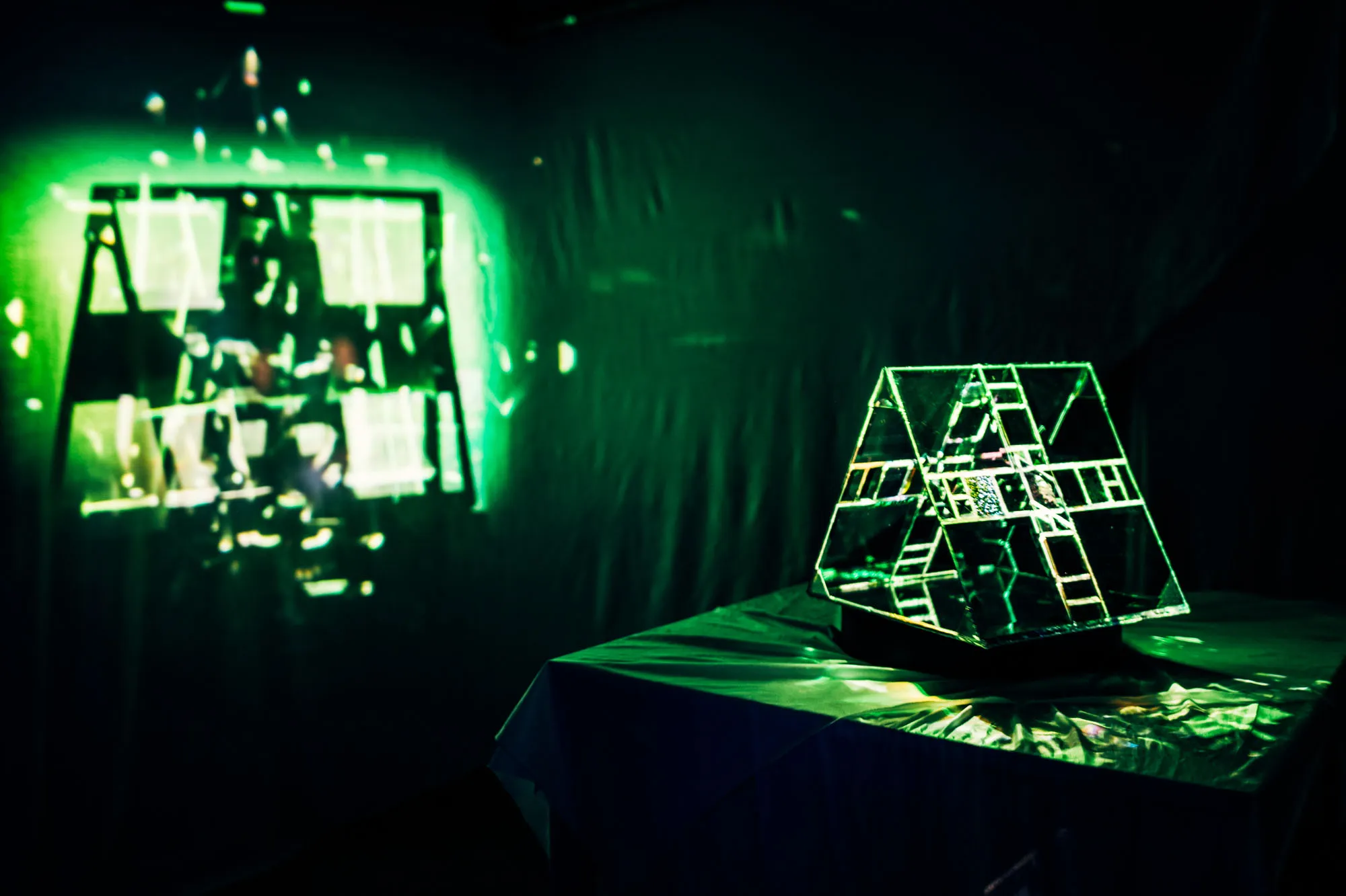 Friday May 7 was our spring show at Phase Space! We hosted a delightful evening of multimedia art installations and audiovisual performances. We were really glad that the event was successful despite the sudden spell of bad weather that rolled past us that weekend. I did a live set with fellow Phase Space organizers Andrei and Irfan as NEW DELUSION, in which we performed acoustic instruments with live electronic processing, with visual oscillations on a modified Vectrex display. Cskonopka came down from Boston to play a powerful solo audiovisual set, and Insomniac Hotel played a beautiful ambient set with live visuals by ÉMU. We also had a video installation by Monica Panzarino, and a collaborative installation combining sound, glass, and light art by Valeria Divinorum and Camilla Padgitt-Coles. It was an exciting confluence of creativity and community that I was honored to be a part of.