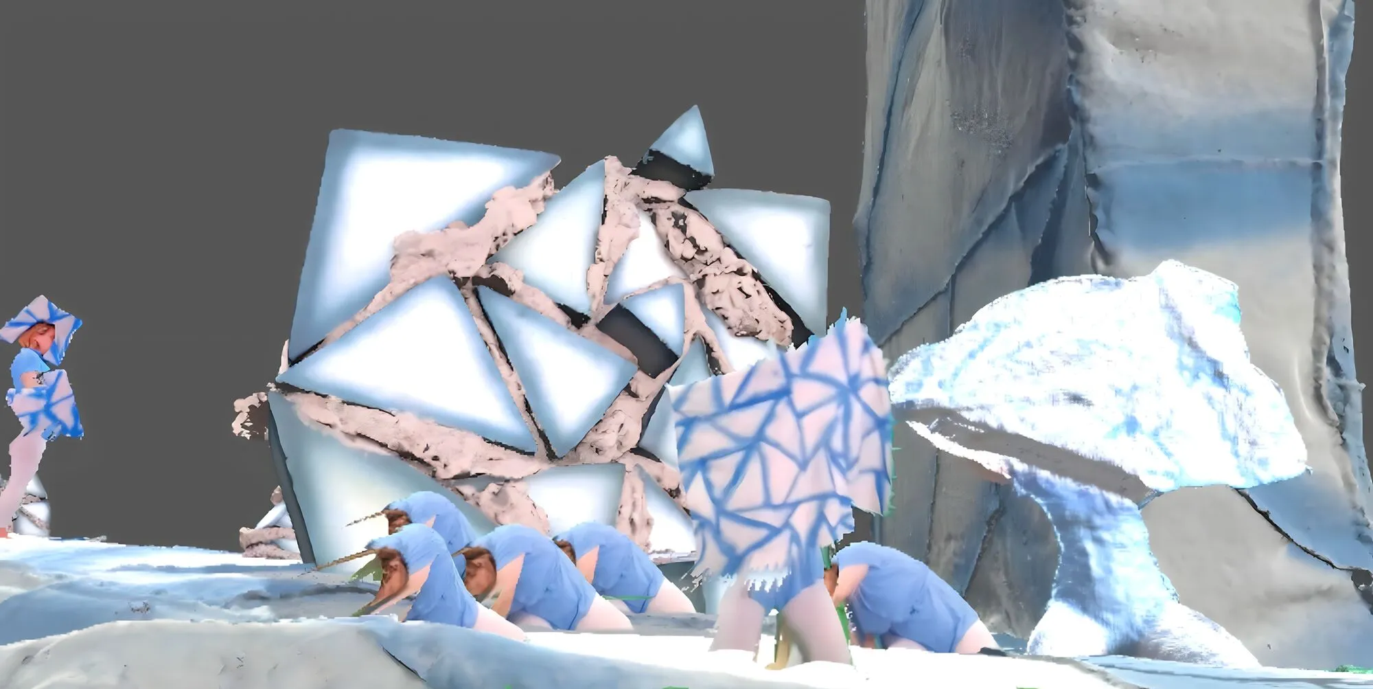 At the event, Anna performed an experimental run-through of The Shapes We Leave Behind, a strange livestream performance in which she greenscreens herself, wearing various sculptural costumes created by collaborator Fawn Krieger, into a surreal video-game-esque landscape filled with glitchy 3D scanned statues of herself, while also singing and performing electronic music.