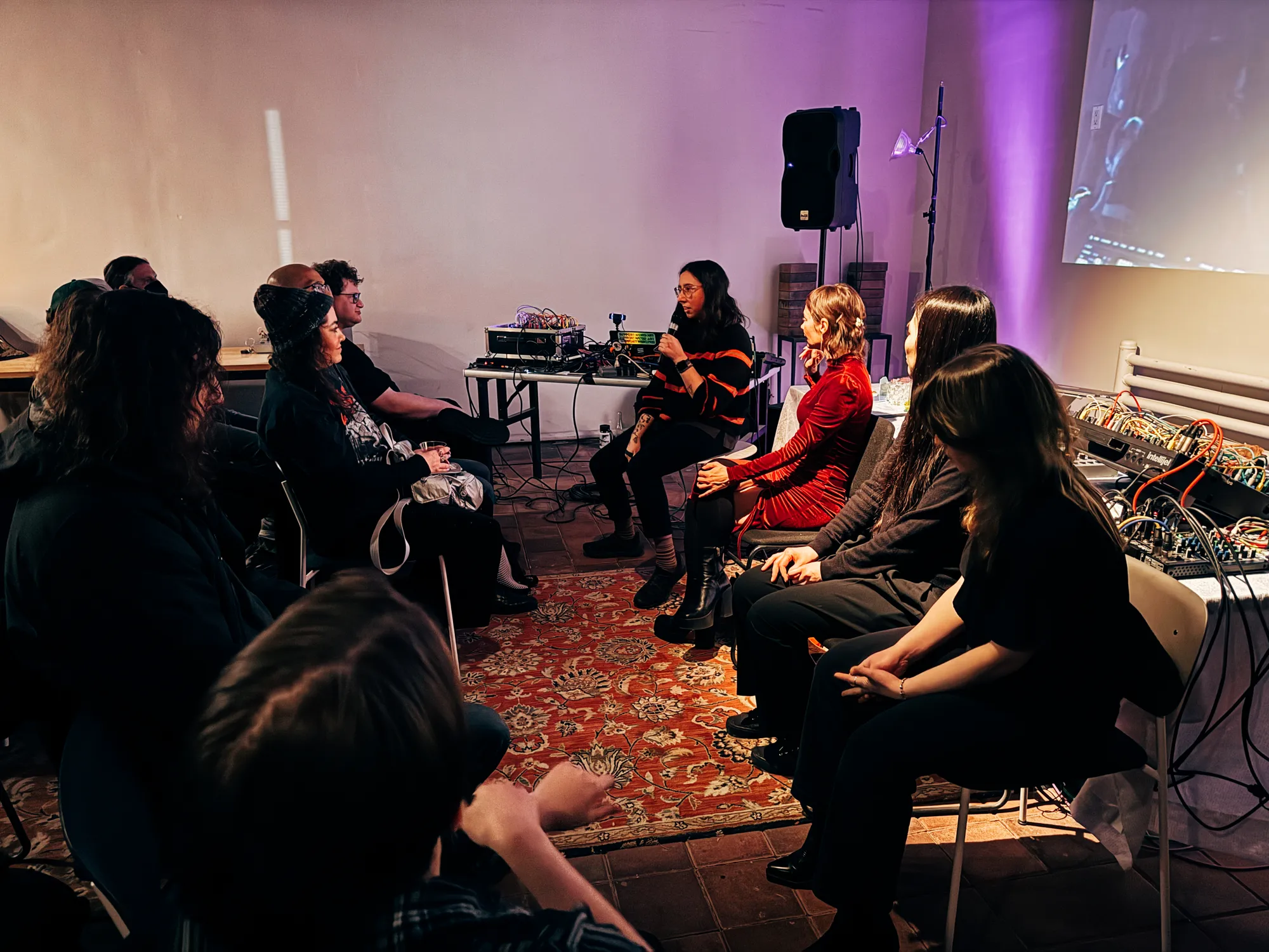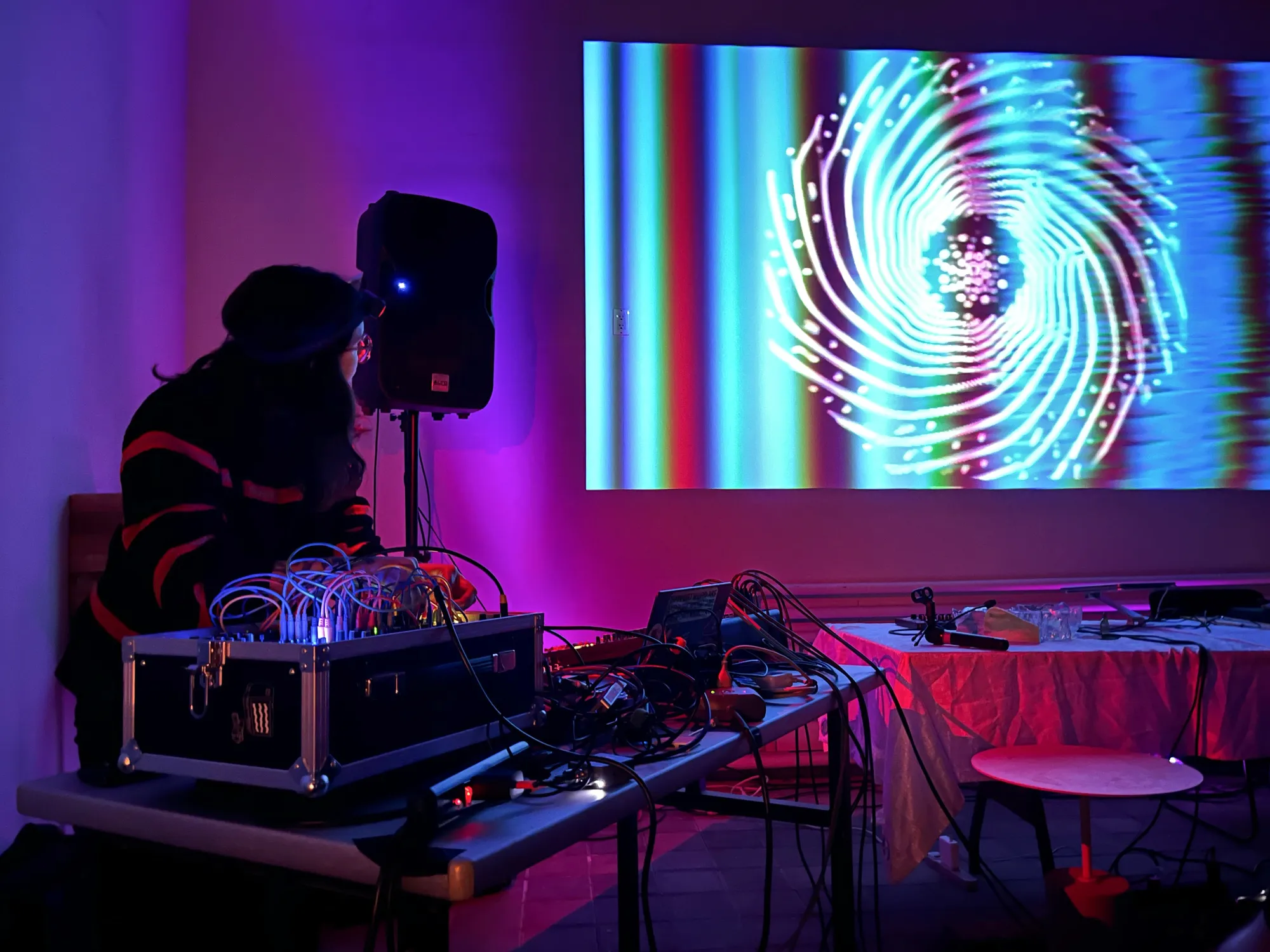 This installment of the series was themed around Audiovisual Alchemy, with performances by Maria Takeuchi and Melissa F. Clarke, and a screening by Rachel Efruss. After the main event, we all sat down together for a Q&A with the audience about our processes, and I talked a little about my system for live generative visuals.